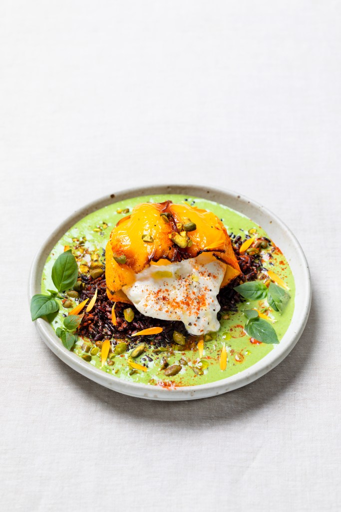 RECETTE DES POIVRONS RÔTIS FARCIS À LA BURRATA, CRÈME AU BASILIC (P.83)