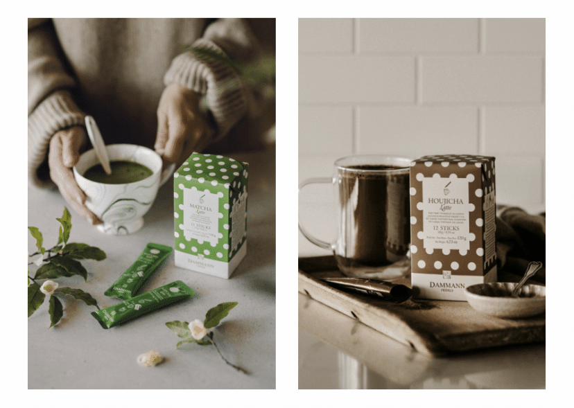 Imaginées et mises au point en collaboration avec un producteur-partenaire de thés au Japon, Dammann Frères lance deux recettes de latte en format stick : Matcha Latte et Houchija Latte (thé vert dont les feuilles ont été torréfiées). Chaque stick contient du lait écrémé en poudre, du sucre et le thé en poudre. Il suffit simplement de le mélanger à de l’eau chauffée à 80°.