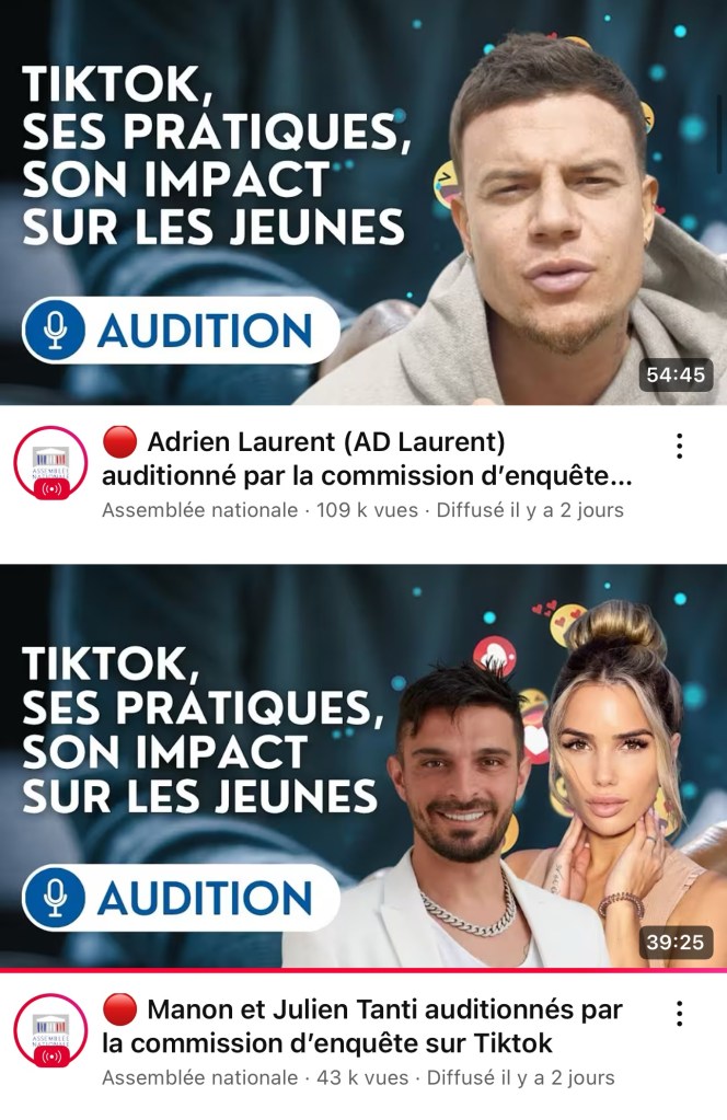 Ce que la commission voulait amener, c’est une réflexion et une prise de conscience des effets psychologiques de TikTok sur les jeunes, voire les très jeunes. À travers les lignes, le couple Tanti (surtout Julien Tanti, très conciliant) et AD Laurent ont permis d’avancer. Certes, leur contenu et notamment AD Laurent qui s’adresse à un public adulte, plaît autant qu’il déplaît. Mais dans leurs mots, leurs échanges avec les députés, on comprend que leur intérêt principal est le divertissement. Ils viennent tous les trois de la télé-réalité et conçoivent les réseaux sociaux comme tels. Et comme un métier, sauf que les règles en vigueur ne doivent pas restées ignorées. Banni d’Instagram, Snapchat et TikTok, AD Laurent aura peut-être compris après cette commission que son contenu adulte n’a de place que sur… les réseaux sociaux ou plateformes adultes. Logique. Et le couple Tanti, qui exposent leurs enfants dans le cadre de collaborations rémunérées alors qu’il faut respecter la loi et le droit à l’image de leurs propres enfants, en a pris conscience. Quand aux fans qui suivent et donnent de l’argent, libre de faire.